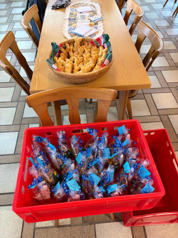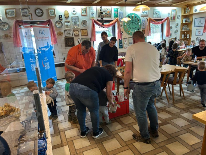 Im Anschluss ging es in die Gaststätte des Geflügelzuchtvereins, wo bei Kaffee und Kuchen in gemütlicher Runde die Kinder ihre gesammelten Eier beim Vorsitzenden, Björn Sommerer, gegen ein kleines Osternest und einen Osterhasen aus Hefezopf eintauschen konnten.