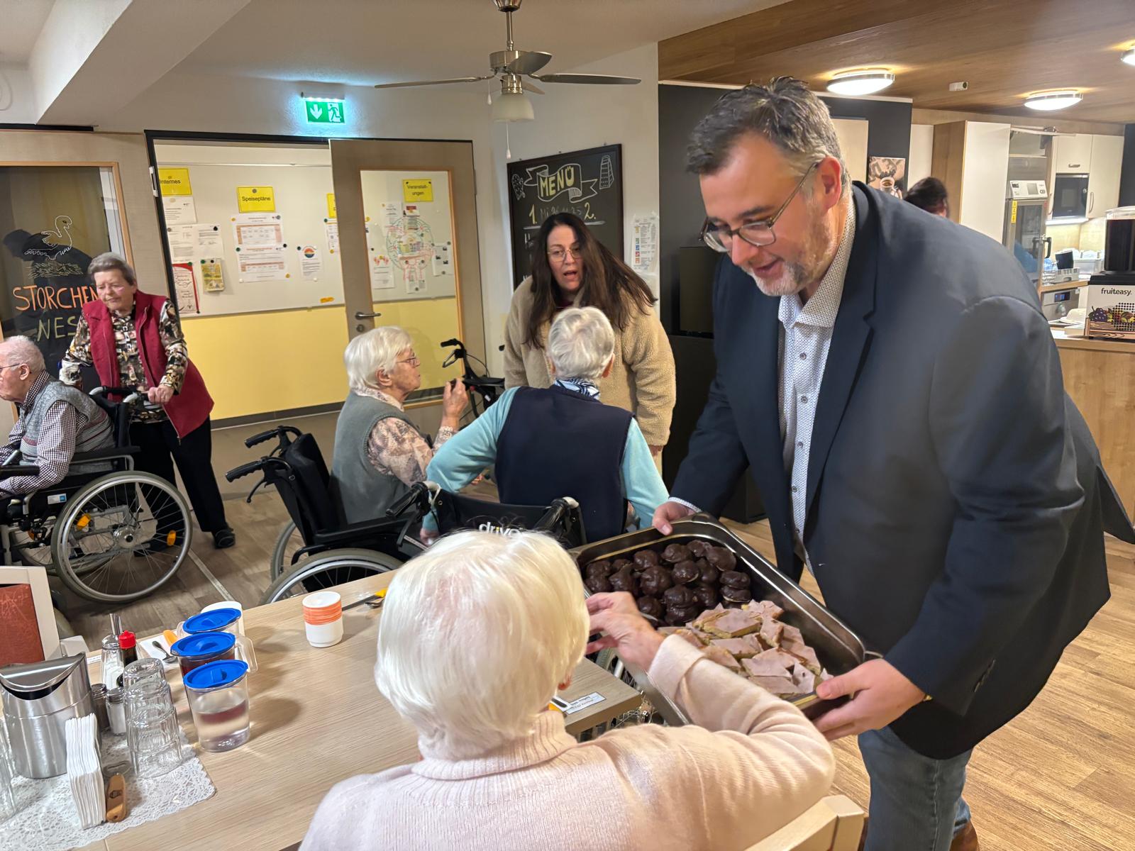 „Wir organisieren jedes Jahr einen Aktionstag mit den Kindern, um ihnen das Gemeindeleben näherzubringen“, erklärte Sommerer beim Besuch im Seniorenheim. Einrichtungsleiterin Ulrike Schramm bedankte sich im Namen der Bewohner und würdigte die Kontinuität mit der sich die FuG seit Jahren an der Ausgestaltung der Vorweihnachtszeit in der Seniorenwohnanlage beteiligt – „Schön, dass ihr nicht nur im Wahlkampf zu uns kommt.“